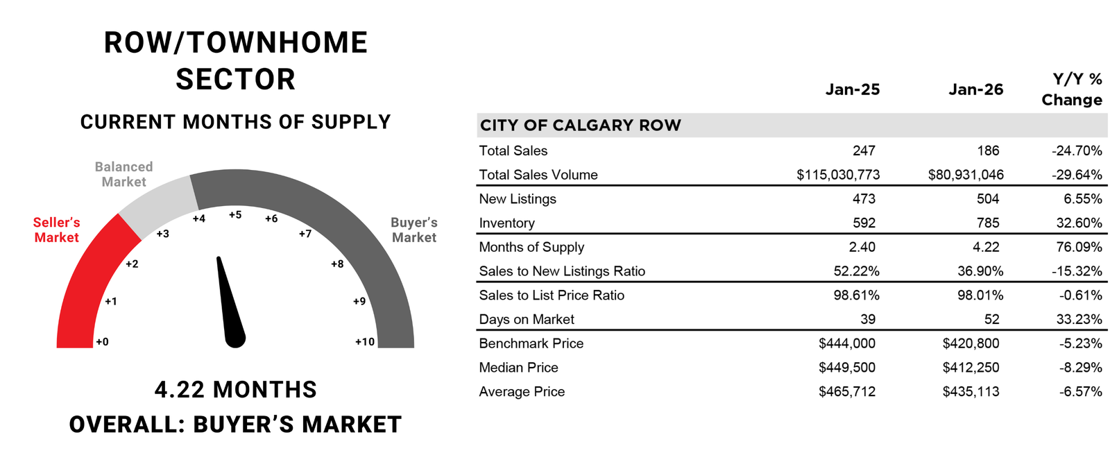 “Following the typical December slowdown, potential buyers for high-density homes were more hesitant to return to the market in January, as increased supply choice across all aspects of the market has reduced the sense of urgency,” said Ann-Marie Lurie, CREB®’s Chief Economist. “At the same time, sellers were quick to bring their listings onto the market, causing the sales-to-new-listings ratio to drop to 44%, mostly due to shifts in apartment and row-style homes. Overall, this is not entirely uncommon for January, as both buyers and sellers weigh their options ahead of the spring market.”