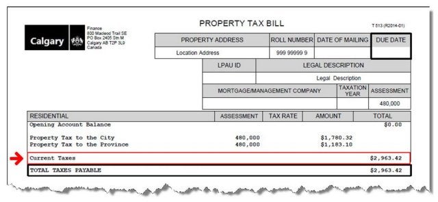 Sample City of Calgary Property Tax Bill for visual purposes only.