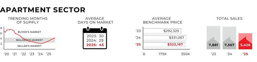 CREB 2026: In 2025, the market shifted from favouring sellers to more balanced conditions, as improved supply in the new home, rental, and resale markets coincided with demand returning to more typical levels. This alleviated much of the pressure on home prices last year, particularly in the apartment and row segments.