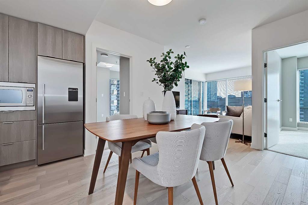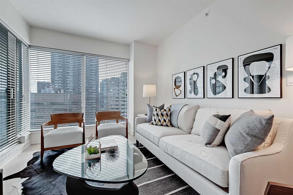 Welcome to VOGUE, one of Calgary's premier upscale condo developments, built by trusted local builder LaCaille. Featuring a gorgeous lobby with full-time concierge services, elegant common areas, indoor visitor parking, and a 36th-floor sky lounge complete with a full gym, studio, meeting room, party room, and multiple outdoor terraces featuring views of the city skyline, river and mountains – this building is a cut above anything else in this price range.